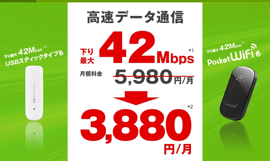 - 端末の一括支払いは不可能(2年契約で月額3,880円のみ)