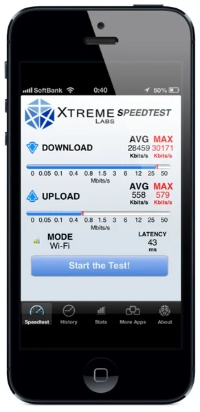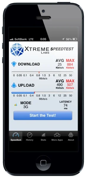 これは、そう、ソフトバンクの通信制限がきちゃったのか!と考えています、いや、もう間違いなくこれは通信制限と思います。だって、LTE電波バリ3で25kbpsって!!wwwwwwありえない。ここは(僕のiPhone5ね)、ISDN時代にでもタイムスリップしてしまったのか!?いや、タイムリープなら、シュタインズゲートマニアの僕にはむしろウェルカムなのですが(笑)ごめんなさい、話がそれました。 てか、25kbpsって、それはさすがにないだろー、劇劇遅過ぎです。昨日くらいまでは、もしかして僕のiPhone5が悪いのかと考えて、再起動やバックグラウンドアプリを終了させたり色々試してはみたのですが、どうにも、やはりおかしい、おかしいです!!で、自宅のWifiに接続すると、きちんと20Mbps以上の快適な通信スピードが出ているもんだから、やはりiPhoneが原因ではありません、やはりソフトバンク側の通信制限なんだろうねぇ。